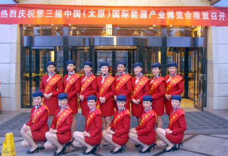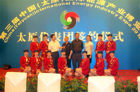 太原旅游職業(yè)學(xué)院空乘專業(yè)學(xué)生 擔(dān)任第三屆中國國際新能源博覽會(huì)禮儀 本網(wǎng)訊 2010年9月16日,由山西省政府、商務(wù)部、科技部和國家能源局聯(lián)合主辦的第三屆中國(太原)國際能源產(chǎn)業(yè)博覽會(huì)在太原開幕。金通航空培訓(xùn)合作院校太原旅游職業(yè)學(xué)院旅游藝術(shù)系空中乘務(wù)專業(yè)Y091班共40名同學(xué)參加并擔(dān)任了本次會(huì)議及各專題論壇和重點(diǎn)項(xiàng)目簽約儀式暨成果發(fā)布會(huì)的立業(yè)接待工作。