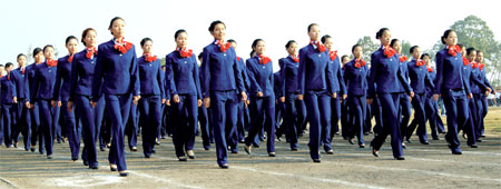 運(yùn)動(dòng)場那抹亮麗的天藍(lán)色 本網(wǎng)訊 11月5日,桂林市一個(gè)艷陽高照的日子,天高云淡、氣候宜人,桂林旅游高等專科學(xué)校第十七屆運(yùn)動(dòng)會(huì)隆重召開!入場式開始了,旅游與休閑管理系方隊(duì)開始經(jīng)過主席臺,空中乘務(wù)專業(yè)女生組成的方陣邁著整齊的步伐走了過來,同學(xué)們一身亮麗的天藍(lán)色,立刻吸引了全場師生的目光!