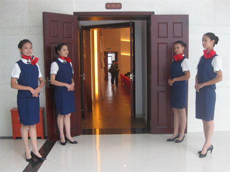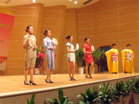 重慶師范大學(xué)地理與旅游學(xué)院藝術(shù)教育(空乘與禮儀方向)2010級(jí)的同學(xué)們?cè)陂_(kāi)營(yíng)儀式上表現(xiàn)優(yōu)秀,其中劉佳樂(lè)同學(xué)和來(lái)自也門的留學(xué)生Ebrahim共同擔(dān)任了此次活動(dòng)的主持人,她大方得體、從容不迫的主持風(fēng)格得到觀眾好評(píng)。這些未來(lái)將在藍(lán)天翱翔的驕子,將她們美麗的笑容遍布在現(xiàn)場(chǎng)的每一個(gè)角落,從前臺(tái)禮儀、接待、會(huì)場(chǎng)引導(dǎo)的細(xì)小工作到在舞臺(tái)上表演為外國(guó)友人準(zhǔn)備的中國(guó)特色十足的節(jié)目,她們都一絲不茍,認(rèn)真對(duì)待,優(yōu)雅從容,充分展現(xiàn)了空乘學(xué)子的風(fēng)采。