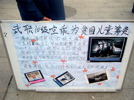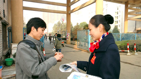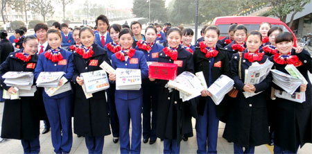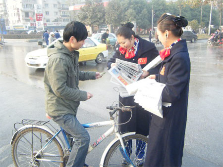武職空乘專業(yè)學(xué)生賣報獻(xiàn)愛心 本網(wǎng)訊 2010年12月5日,武漢職業(yè)技術(shù)學(xué)院空中乘務(wù)專業(yè)10級學(xué)生和國際日語10301班學(xué)生為幫助貴州貧困地區(qū)學(xué)生,特舉行了義賣報紙籌捐活動。