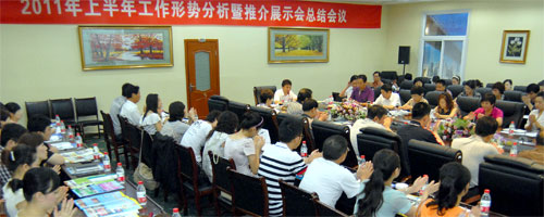 會(huì)議結(jié)束時(shí),焦殿成董事長(zhǎng)兼總經(jīng)理就2011年上半年的主要工作情況、推介展示會(huì)總結(jié)和部署2011年下半年工作任務(wù),著重講了三個(gè)方面工作: