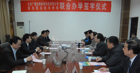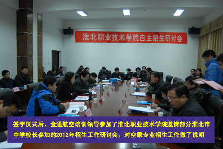 淮北職業(yè)技術(shù)學(xué)院與北京廣慧金通教育科技有限公司 簽署合作辦學(xué)協(xié)議 本網(wǎng)訊:隨著“金通航空培訓(xùn)”校企合作取得顯著成效,教學(xué)質(zhì)量逐日提升,就業(yè)趨于穩(wěn)定,公司影響力帶動(dòng)了辦學(xué)規(guī)模。2012年2月11日,淮北職業(yè)技術(shù)學(xué)院與北京廣慧金通教育科技有限公司合作辦學(xué)簽字儀式在淮北職業(yè)技術(shù)學(xué)院會(huì)議室召開。 (會(huì)議現(xiàn)場) 淮北職業(yè)技術(shù)學(xué)院院長魏仕民,副院長姬興華,副院長張亞以及金通航空培訓(xùn)董事長兼總經(jīng)理焦殿成,副總經(jīng)理曾祥榮,副總經(jīng)理兼招生工作部總經(jīng)理肖曉明,一行參加了簽約儀式。魏仕民院長與焦殿成董事長代表雙方共同簽訂了合作辦學(xué)協(xié)議書。 魏仕民院長對(duì)焦殿成董事長一行的到來表示熱烈歡迎,他在講話中表示,雙方的合作是本著真誠、共贏的態(tài)度開展的,希望大家以聯(lián)合辦學(xué)為契機(jī),進(jìn)一步拓展合作空間,豐富合作內(nèi)容,為探索我國航空人才的教育與培養(yǎng)共同努力奮斗! (魏仕民院長發(fā)表講話) 董事長焦殿成發(fā)表講話,他首先回顧了公司與淮北職業(yè)技術(shù)學(xué)院合作歷程,他說:自2007年起,公司與淮北職業(yè)技術(shù)學(xué)院就進(jìn)行了校企合作,在四年多的時(shí)間里,雙方合作感情逐漸加深,合作友誼逐漸建立,合作方式逐漸完善,雙方互相理解、相互信任、互相支持,結(jié)下了校企合作辦學(xué)的真誠碩果。 (焦殿成董事長發(fā)表講話) 焦總強(qiáng)調(diào),民航空乘人才作為民航系統(tǒng)的重要生產(chǎn)力,其選拔培養(yǎng)受到社會(huì)的廣泛關(guān)注。成為一名空中乘務(wù)員,是高校畢業(yè)生和家長展翅藍(lán)天的夢想。面對(duì)國家教育體制改革的良好趨勢,適逢我國民航業(yè)快速發(fā)展的有利契機(jī),校企之間真誠合作,攜手培養(yǎng)社會(huì)需要的高端人才,將是高等院校和企業(yè)科學(xué)發(fā)展的的必由之路、創(chuàng)新之路和希望之路。作為具有十余年民航空乘培養(yǎng)經(jīng)驗(yàn)的“金通航空培訓(xùn)”,現(xiàn)在已經(jīng)與國內(nèi)十三所本科院校、12所高職高專院校合作開辦本科、?茖W(xué)歷空乘專業(yè),已經(jīng)將1.18萬名學(xué)生輸送到國內(nèi)外39家航空公司擔(dān)任民航乘務(wù)員和民航安全員,已經(jīng)將3萬余名合作院校學(xué)生輸送到民航機(jī)場從事安檢、值機(jī)、要客和油輪、海乘、高鐵、500強(qiáng)企業(yè)等高端服務(wù)崗位。 隨后,魏仕民院長與焦殿成董事長代表雙方共同簽訂了合作辦學(xué)協(xié)議書。 (雙方簽署合作協(xié)議) 安徽,于中國東部,山河秀麗、人文薈萃、稻香魚肥、江河密布。五大淡水湖中的巢湖橫臥江淮,素為長江下游、淮河兩岸的“魚米之鄉(xiāng)”。安徽省與浙江省、江蘇省、山東省、河南省、湖北省和江西省相接,地貌以平原、丘陵和低山為主。是貫通南北的交通要道,也是我國重要的交通樞紐。為民航業(yè)的發(fā)展提供了有利條件。 (雙方合影留念) 據(jù)悉,淮北職業(yè)技術(shù)學(xué)院空中乘務(wù)專業(yè)自2012年開始面向安徽省計(jì)劃招生人數(shù)200名,相信,淮北職業(yè)技術(shù)學(xué)院與北京廣慧金通教育科技有限公司的合作勢必會(huì)實(shí)現(xiàn)合作共贏的目的,同時(shí),也將圓了安徽地區(qū)莘莘學(xué)子及家長的藍(lán)天夢。 預(yù);幢甭殬I(yè)技術(shù)學(xué)院與金通航空培訓(xùn)的校企合作辦學(xué)事業(yè)取得圓滿成功! 相關(guān)鏈接: 淮北職業(yè)技術(shù)學(xué)院現(xiàn)占地550畝,分布在東、西、南三個(gè)校區(qū),建筑面積20余萬平方米,固定資產(chǎn)2億元,F(xiàn)有教職工648人,專職教師355名,其中高級(jí)職稱118人,教授1人,副教授98人,研究生43人,本科學(xué)歷347人,?萍耙韵8人,學(xué)院現(xiàn)有各類在校生13815人,其中高職教育7624人,成人教育2755人,現(xiàn)代遠(yuǎn)程教育2339人,中職教育1097人。學(xué)院目前共有中共黨員557人,其中教職工黨員328人,離退休黨員95人,設(shè)13個(gè)黨總支,1個(gè)直屬支部。“十五”期間學(xué)院共發(fā)表學(xué)術(shù)論文543篇,目前共有省級(jí)科研項(xiàng)目4項(xiàng),教育部重點(diǎn)科研課題1項(xiàng):高校思想政治理論課新課程體系構(gòu)建與重點(diǎn)難點(diǎn)內(nèi)容研究《形勢與政策》。學(xué)院建有100M帶寬出口的校園網(wǎng),有計(jì)算機(jī)1000余臺(tái),F(xiàn)代化圖書館建筑面積9400平方米,館內(nèi)藏書36萬冊,報(bào)刊雜志800余種,建有電子閱覽室兩個(gè)。學(xué)院教學(xué)設(shè)施齊全,共有5棟教學(xué)樓,150間教室,5個(gè)實(shí)習(xí)實(shí)訓(xùn)中心(現(xiàn)代制造技術(shù)實(shí)訓(xùn)中心、建筑技術(shù)實(shí)訓(xùn)中心、醫(yī)療護(hù)理技術(shù)實(shí)訓(xùn)中心、計(jì)算機(jī)網(wǎng)絡(luò)技術(shù)實(shí)訓(xùn)中心、服裝加工設(shè)計(jì)制作實(shí)訓(xùn)中心),68個(gè)校內(nèi)實(shí)習(xí)實(shí)訓(xùn)室和120余處校外實(shí)習(xí)實(shí)訓(xùn)基地。