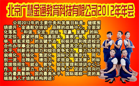 強(qiáng)基固本 招就并舉 抓實(shí)求穩(wěn) 為全面實(shí)現(xiàn)科學(xué)和可持續(xù)發(fā)展而努力奮斗 本網(wǎng)訊:龍騰虎躍賀新春,四海笙歌喜臨門(mén)。時(shí)光飛逝如閃電,轉(zhuǎn)眼間白駒過(guò)隙,充實(shí)忙碌的2011年已經(jīng)過(guò)去,滿懷期待的2012年向我們走來(lái)。勤勞智慧的金通人在2012年2月3日這一天濟(jì)濟(jì)一堂,一起回顧過(guò)去希冀未來(lái),共同展望未來(lái)一年的目標(biāo)與發(fā)展,為2012新的起點(diǎn)開(kāi)啟新篇章。 (焦殿成董事長(zhǎng)出席此次年會(huì)并發(fā)表重要講話) 來(lái)自內(nèi)蒙古呼和浩特、通遼,廣西桂林、南寧,山西太原、臨汾,重慶、貴州貴陽(yáng)、云南昆明、安徽蕪湖、吉林長(zhǎng)春、江蘇南京、湖北武漢、山東濟(jì)南、河北秦皇島、浙江杭州、新疆烏魯木齊、天津、福建廈門(mén)、遼寧沈陽(yáng)以及北京的全國(guó)各地辦事處70余名中層以上干部及北京總部全體成員參加了年會(huì)。本次會(huì)議由綜合管理部總經(jīng)理付曉軍主持,焦殿成董事長(zhǎng)做了“強(qiáng)基固本、招就并舉、抓實(shí)求穩(wěn),為全面實(shí)現(xiàn)科學(xué)和可持續(xù)發(fā)展而努力奮斗”的重要講話。年會(huì)共分為六項(xiàng)議程。 (會(huì)議現(xiàn)場(chǎng)) 在回顧中進(jìn)步,在總結(jié)中成長(zhǎng),在期許中前進(jìn)。全國(guó)駐各地、各院校工作處主任依次進(jìn)行了詳細(xì)的工作匯報(bào),就合作院?粘藢I(yè)2011年的招生、教學(xué)、就業(yè)、費(fèi)用收繳、學(xué)生管理等情況進(jìn)行了總結(jié),還憧憬展望了2012年新學(xué)期的工作思路,董事長(zhǎng)焦殿成認(rèn)真聽(tīng)取了匯報(bào),時(shí)而點(diǎn)頭贊許,時(shí)而若有所思。隨后,財(cái)務(wù)工作處、招生工作部、院校教學(xué)工作部、就業(yè)工作部、綜合管理部、培訓(xùn)中心也結(jié)合各自2011年的工作情況、計(jì)劃完成情況,以及2012年下一步的工作安排做了充分詳實(shí)的匯報(bào)和交流。大家紛紛表示,2012年是挑戰(zhàn)與機(jī)會(huì)并存的一年,全公司上下有決心完成2012年充滿挑戰(zhàn)的計(jì)劃與任務(wù),以更加認(rèn)真專注的態(tài)度為公司創(chuàng)造更大的利潤(rùn)與價(jià)值。 作為會(huì)議重頭戲的議程是公司董事長(zhǎng)兼總經(jīng)理焦殿成先生所做的工作報(bào)告。董事長(zhǎng)焦殿成先生激情洋溢的講話將會(huì)場(chǎng)熱烈的氣氛推向了最高潮。 焦董首先向全體員工道一聲新年的祝福:祝愿大家在新的一年里健康快樂(lè)、平安幸福!焦董說(shuō):“2011年,是公司發(fā)展歷程中極不平凡的一年。我們緊緊圍繞“和諧、安定、團(tuán)結(jié)、雙贏、發(fā)展”的工作指導(dǎo)思想,全體員工精誠(chéng)團(tuán)結(jié),敬業(yè)向上,做了大量的、富有成效的工作,取得了一個(gè)又一個(gè)成績(jī)。可以說(shuō),2011年是公司的發(fā)展之年、轉(zhuǎn)型之年、創(chuàng)新之年、收獲之年。” 在回顧和總結(jié)2011年的工作時(shí),焦總強(qiáng)調(diào),在充滿希望、勵(lì)志圖強(qiáng)的2011年,公司主要在以下六個(gè)方面取得了突出成績(jī): 一是合作辦學(xué)從高職大專向國(guó)家公辦本科院?邕M(jìn),層次和水平得到大幅度提升,標(biāo)志著企業(yè)轉(zhuǎn)型工作起步早、把握準(zhǔn)、力度大、效果好。2011年,“金通航空培訓(xùn)“在原有七所本科院校的基礎(chǔ)上,先后新加盟了蘇州大學(xué)文正學(xué)院、青海師范大學(xué)、廣西師范學(xué)院、山西師范大學(xué)、西北師范大學(xué)、杭州師范大學(xué)錢江學(xué)院六所本科院校,使本科合作院校增加到了13所,層次上得到提升,規(guī)模上得到拓展,效益上得到保障,標(biāo)志著公司戰(zhàn)略轉(zhuǎn)型取得圓滿成功。同時(shí),在做好現(xiàn)有?坪献髟盒9ぷ鞯幕A(chǔ)上,又與西南政法大學(xué)屬下的重慶海聯(lián)職業(yè)技術(shù)學(xué)院、與安徽淮北職業(yè)技術(shù)學(xué)院建立了硬性的合作辦學(xué)關(guān)系。 二是就業(yè)工作取得了可喜成績(jī)。截止2011年底,組織升空就業(yè)面試 58次,涉及16個(gè)航空公司,推薦升空就業(yè)970人,完成全年升空就業(yè)指標(biāo)數(shù)的103.6%;組織地面就業(yè)面試 18次,涉及20個(gè)機(jī)場(chǎng)等單位,推薦地面就業(yè)545人。 三是院校教學(xué)管理工作更加規(guī)范。在院校教學(xué)工作部的緊張努力下,作為公司開(kāi)發(fā)的重要基礎(chǔ)項(xiàng)目——七本空乘專業(yè)主干課程教材編輯、審核成書(shū),正式由民航出版社出版,新教材在合作院校或非合作院?粘藢I(yè)中普遍推廣使用,得到了較高評(píng)價(jià)。 四是招生工作進(jìn)展順利。2011年,合作院校的招生工作院校多、范圍廣、層次差異、時(shí)間集中是突出特點(diǎn),公司招生工作部以建立生源基地為重點(diǎn),保證生源質(zhì)量,不斷提高了招生能力,做到了招生計(jì)劃、招生范圍、招生人員的合理安排,科學(xué)組織實(shí)施。公司各單位和參與招生工作的同志服從統(tǒng)一調(diào)度,在招生期間發(fā)揚(yáng)了胸懷全局、吃苦耐勞、團(tuán)結(jié)協(xié)作、雷厲風(fēng)行、優(yōu)質(zhì)高效的“金通精神”,竭盡所能,全力配合,做到了凝聚力、執(zhí)行力的高度統(tǒng)一