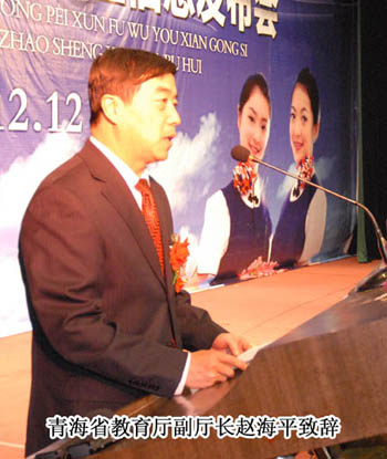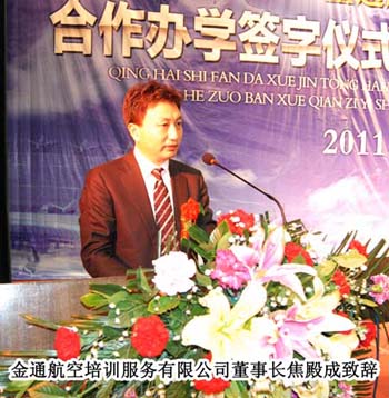 焦殿成董事長在致辭中提到:要培養(yǎng)出具有青藏高原文化背景、掌握藏漢英三語的特色空乘人才,將眾多的少數(shù)民族莘莘學(xué)子送上藍天,成為令人羨慕、陽光職業(yè)的民航乘務(wù)員、安全員,讓青藏高原勤勞善良人民的子孫后代走向國際、國內(nèi)高端服務(wù)和管理崗位,這是利于當今、著眼未來、功在長遠的千秋偉業(yè)。 趙海平副廳長代表青海省教育廳對雙方合作開辦空乘專業(yè)成功簽約表示了熱烈祝賀。并指出由青海師范大學(xué)與金通航空培訓(xùn)服務(wù)有限公司合作開辦的空乘專業(yè)正式簽約,落戶師大,落戶青海,這是在全國民航業(yè)改革開放、科學(xué)發(fā)展、快速繁榮,青海省深入貫徹落實教育規(guī)劃綱要,推動高等教育事業(yè)科學(xué)發(fā)展的大背景下,校企雙方審時度勢、開拓創(chuàng)新、與時俱進的重大舉措,是推動青海省教育事業(yè)改革和發(fā)展的創(chuàng)新之路、希望之路。