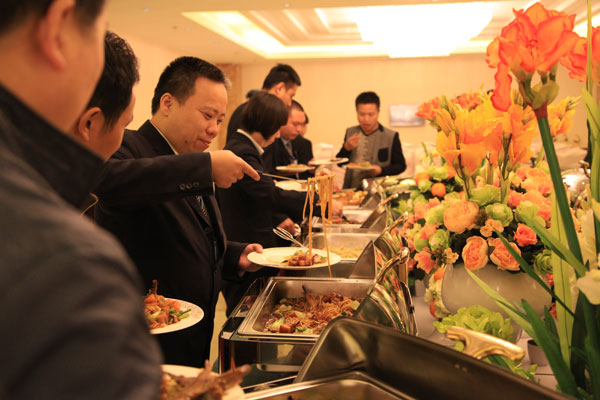 中午時(shí)分餐飲正式對外試營業(yè),滿載盛情的自助餐廳迎來第一批食客,舒心的就餐環(huán)境,熱情周到的溫情服務(wù),琳瑯滿目的各式菜肴,讓食客們趨之若鶩,大呼過隱。