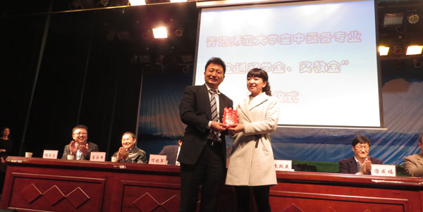 自2011年校企合作開始,為鼓勵學(xué)生認真學(xué)習(xí),北京廣慧金通教育科技有限公司設(shè)立了“金通獎學(xué)金、獎教金”。在青師范大學(xué)舉行的空乘專業(yè)管委會會議暨金通獎學(xué)金、獎教金頒發(fā)儀式上,副校長崔巍,公司董事長焦殿成等領(lǐng)導(dǎo)為獲得獎項的48名同學(xué)和老師們頒獎。崔副校長對同學(xué)們表示了衷心的祝賀,并希望他們再接再厲,以優(yōu)異的成績回報社會。焦殿成董事長對同學(xué)們提出了三點要求:一要刻苦學(xué)習(xí)、團結(jié)友愛;二要提高自身素質(zhì),養(yǎng)成良好習(xí)慣;三要做好職業(yè)生涯規(guī)劃,做好自我定位。他希望同學(xué)們心懷感恩,努力付出,圓夢藍天,并祝愿青海師范大學(xué)與北京廣慧金通教育科技有限公司的明天更加美好!