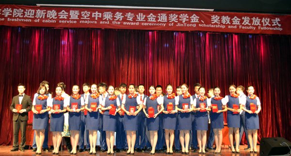 為進(jìn)一步加強(qiáng)內(nèi)蒙古師范大學(xué)旅游學(xué)院空乘專業(yè)的學(xué)風(fēng)建設(shè),鼓勵全院師生創(chuàng)先爭優(yōu),2014年10月23日晚,內(nèi)蒙古師范大學(xué)旅游學(xué)院迎新晚會暨空中乘務(wù)專業(yè)金通獎學(xué)金、獎教金頒發(fā)儀式在內(nèi)蒙古師范大學(xué)學(xué)院樓報告廳隆重舉行。