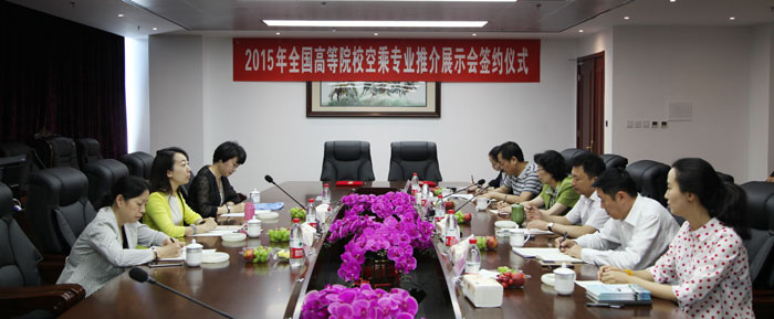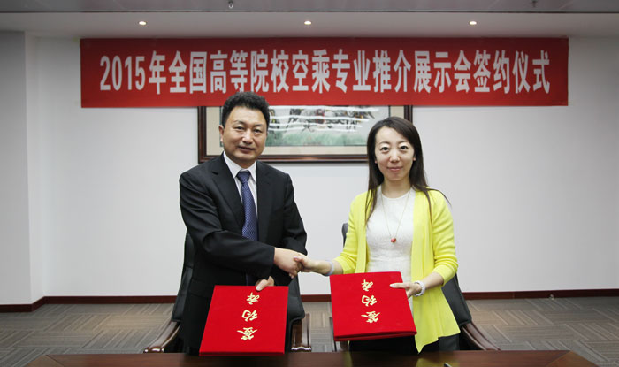 2015年5月21日在北京廣慧金通教育科技有限公司總部,中國(guó)民航人力資源開發(fā)中心與北京廣慧金通教育科技有限公司舉辦了“2015全國(guó)高等院?粘藢I(yè)推介展示會(huì)”合作簽字儀式。