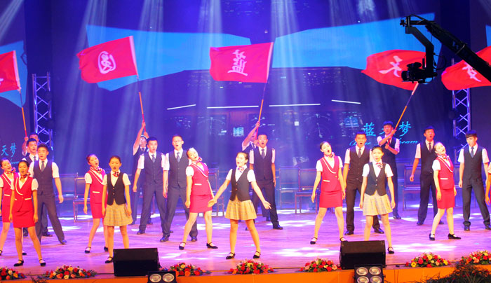 為了讓高中學(xué)生們切身感受“2015年全國高等院?粘藢I(yè)推介展示會”的魅力,主辦方、協(xié)辦方、承辦方一致同意在閉幕式暨頒獎晚會現(xiàn)場,由30名學(xué)生共同表演舞蹈《共圓藍(lán)天夢》!豆矆A藍(lán)天夢》是為增加高中學(xué)生的集體榮譽(yù)感和團(tuán)隊精神,由北京廣慧金通教育科技有限公司出資,專門打造的一首歌曲。歌曲旋律活潑、節(jié)奏明快、歌詞積極向上,表達(dá)出空乘專業(yè)學(xué)子期盼圓夢藍(lán)天的美好愿望。